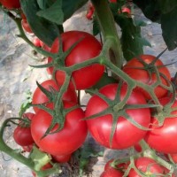 国外引进,大红果番茄,高抗病毒,杂交一代,生长旺盛,节间短,连续坐果能力强,果实均匀,单果重260克左右,萼片平展,商品性好,颜色鲜红亮丽,不空心,果实硬,耐储运,抗病性强,叶部病害抗病强,耐高温,抗裂果,适合春秋露地栽培种植。