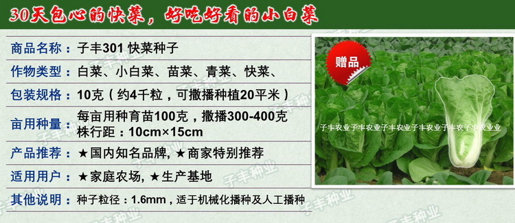 供应子丰301速生结球小白菜蔬菜种子外形漂亮产量高优秀良种