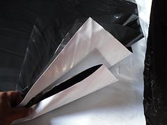 本品外白内黑,主要用于夏秋季节,覆盖时白色面朝上,具有强力的反射光能力,而黑色向内阻止光线通过透入,起到遮阳降温作用,棚内温度比其它蓬布和薄膜覆盖的要降低很多。冬天使用黑面朝外,可吸热化掉上面的霜雪,厚度12丝。PEP黑白功能膜、白面向内能阻隔并反射棚内的大部分红外线(热能)向棚外辐射,从而起到保温作用。PEP黑白功能膜,采用先进的五层共挤技术,薄膜宽度8-18米,厚度12丝,1平方米100克,原料采用纯母料并加入UV抗老化剂,延长了黑白膜的使用寿命。黑白膜广泛用于食用菌大棚,蚕桑大棚,花卉的遮阳、断光(用以调整开花期),水产养殖棚的覆盖物,水耕栽培的不透水层,温室的外层保温、防冻,蔬菜大棚的覆膜、青饲料储存,养鸡舍、养猪舍等等。