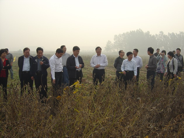 10月9日,河南省农科院在许昌临颍县召开高产稳产大豆新品种郑196现场观摩会。房卫平副院长和省农业厅张明进书记出席会议,国家大豆产业技术体系岗位科学家河北省农科院张孟臣研究员、中国农科院油料所周新安研究员和中国农科院作物所吴存祥研究员应邀参加会议并作现场点评,省农业厅科教处、省农技推广站、省种子管理站、我院推广处、科研处和经作所以及许昌市农业局、许昌市种子管理站、许昌市农科所、漯河市农科院、河南许科种业公司、河南豫研种子公司等部门和单位负责同志和当地种植户代表共100余人参加现场观摩会。