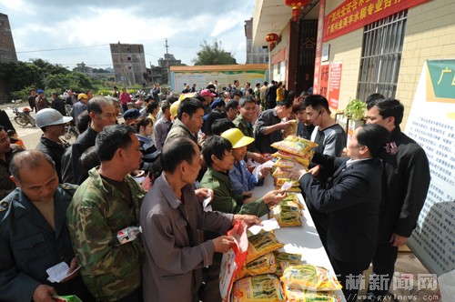 2月14日,在兴业县英丰水稻专业合作社,挤满了四里八乡的农民朋友,他们签订办理了“种粮合同”后,高兴地从工作人员手中领到了优质的水稻种子。