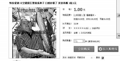 昨天,记者在淘宝网上输入“太空种子”搜索,发现居然有200多条商品销售信息,品种五花八门,粗略一数就有南瓜、黄瓜、茄子、番茄等十多种太空种子,标价从几角到上百元不等。