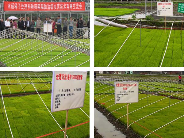 为了强化水稻播种前和秧田期的病虫害预防措施,推进种子处理和秧田阻隔育秧等病虫害预防技术的广泛应用,前移防治关口,降低本田病虫基数和用药次数,提高水稻重大病虫的处置率,保障水稻生产安全,我中心于2013年3月30-31日在广西柳州市召开了水稻种子处理和秧田阻隔防治病虫害技术观摩交流会,来自南方稻区16个省、自治区、直辖市和部分重点市县植保站技术人员、种子处理和秧田阻隔投入品生产企业代表共90多人参加了会议。全国农技中心钟天润副主任到会,并就强化水稻播种前和秧田期的病虫害预防措施,推进种子处理和秧田阻隔育秧等病虫害预防技术提出了工作要求。代表们参观了柳江县禾安农业种植专业合作社利用防虫网秧田全程覆盖阻隔育秧技术,吡虫啉、碧护、咪鲜胺等药剂种子处理和苗期喷雾技术预防病虫害和培育壮秧的现场,交流了各地开展试验示范的进展以及推进措施,展示了拜耳作物科学的60%高巧种子处理悬浮剂、40%卫福悬浮剂、台州遮阳网厂的防虫网、北京诚禾佳信公司的0.136%碧护可湿性粉剂等新产品的田间应用技术和预防病虫害、培育壮秧的效果。