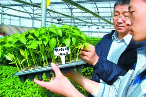 位于通州国际种业科技园的北京神舟绿鹏农业科技有限公司,是我国航天育种领域的龙头企业。昨天,记者走进该公司的育苗大棚,绿油油的小苗精神壮实。绿苗深处,人影晃动,公司负责人赵辉正在和技术员观测新播种的一批太空蔬菜。