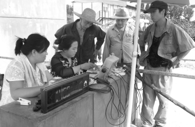 6月15日,山东齐鲁种业在收购山东省兖州市大安镇安家庙村村民的麦种。据了解,安家庙村是该企业在兖州市的18个种子专业村之一,全村1085亩耕地全部为该企业繁育优质麦种鲁原502,今年平均亩产达到了1100斤/亩,在收购阶段,齐鲁种业以高于商品粮价格0.1元/斤的价格敞开收购,今年的收购价在1.25元/斤左右。 本报记者 宋修伟 摄