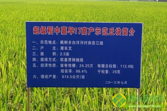 程式华希望各方相互配合,进一步加强优良种子生产和供应,加强不同移栽方式下的栽培技术模式化、标准化,加强推广机制创新,群策群力,共同推进“中嘉早17”的推广应用。