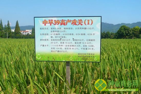 7月25日,从浙江省农业吉尼斯活动办公室传来最新消息,由中国水稻研究所选育、浙江省诸暨市新桔城粮食专业合作社种植的早稻“中早39”,以705.33公斤的单块攻关田单产,打破了沉睡6年之久的浙江省早稻单产纪录。于此同时,在更有推广价值的百亩方里,2013年诸暨市新桔城粮食专业合作社和诸暨市定荡畈植保专业合作社种植的“中早39”早稻百亩方亩产分别达到682.67公斤和658.65公斤,双双打破2009年由嵊州市良种场创造的652.26公斤的纪录。