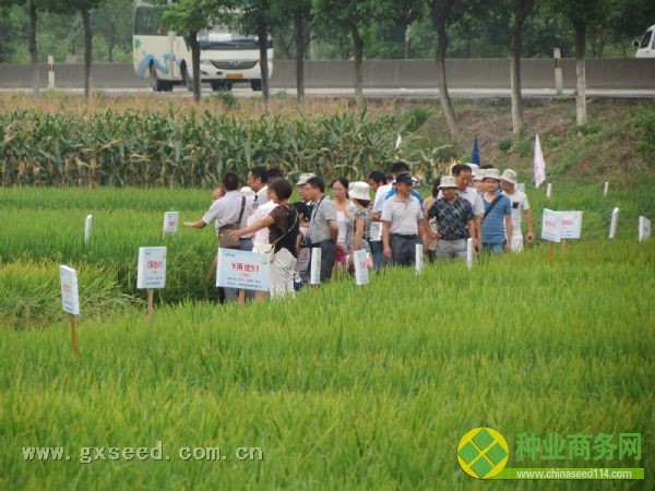 广西第十届“看禾选种,助农增收”活动桂北现场自7月23日开幕以来,陆续迎来八方来客。除启动仪式当天参观的约1000客人以外,近日来“看禾选种”桂北现场共迎接参观客人近1000人次。这些客人有的是周边农户,有的是广西区内企业组织的经销商,更有外省种子企业,如湖南秀华种业组织了来自湖南、湖北的种子经销商80多人,专门租借大巴长途跋涉到现场参观;现场得到了企业代表的高度评价。
