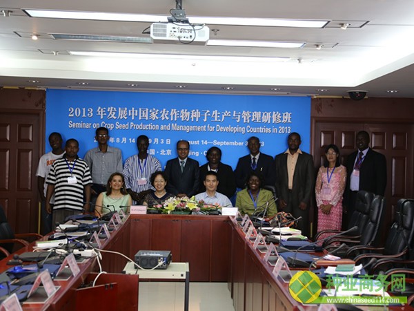 由商务部主办,全国农技中心承办的为期21天的“发展中国家农作物种子生产与管理研修班”于8月14日在京开班,来自肯尼亚、苏丹、埃及、哥伦比亚、缅甸等19个亚洲、非洲和拉丁美洲国家的20名农业官员和技术人员参加了本次研修班。全国农技中心杭大鹏书记出席开班式并致辞。本次培训采用专家专题讲课和实地考察参观相结合的方式进行,分为两个阶段。第一阶段在京培训期间,邀请全国农技中心、中国农科院、北京市蔬菜工程中心等单位的专家分别就中国农业和农技推广体系、农作物种子加工技术、良好农业操作规范、脱毒马铃薯生产技术等为学员们做专题讲座,同时参观考察国家种质资源库、北京农林科学院、北京奥瑞金种业公司研发基地、北京农作物品种展示基地、中国农业展览馆等;第二阶段在湖南省农科院考察期间,将听取相关专家就国内外杂交水稻发展概况、亚非拉国家超级杂交稻培训模式、超级杂交稻三期目标攻关进展、中国种业的形成与发展、农业杂优优势的综合利用、中国蔬菜种业现状及发展趋势等做的专题报告,同时参观考察相关设施农业园、示范生产基地、科技示范园等。