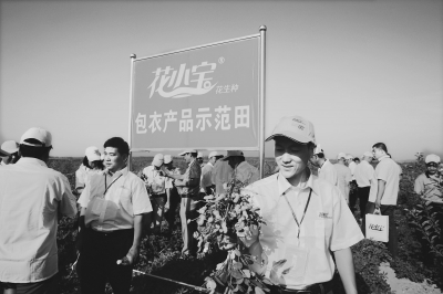 “同样的管理,长势好的,播种时采用的是‘花小宝’牌包衣花生种;而长势差的没有采用包衣技术,所以两个地块花生的长势形成鲜明对比。”在嘉祥县狼山农场花生良种繁育基地,圣丰种业的工作人员向参会经销商解释说,“花小宝”包衣花生种,运用先进的脱壳包衣加工集成技术,除有效杀虫、杀菌外,其包衣剂还含有能促进花生生长的各种微量元素;与此同时,采用单粒精量播种和种肥同播技术,花生前期不仅出苗整齐、苗壮,后期生长也十分稳健。