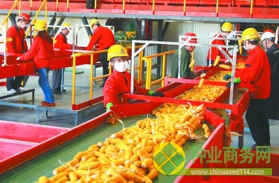 原标题:张掖甘州区一家种子企业在加工制种玉米鲜果穗