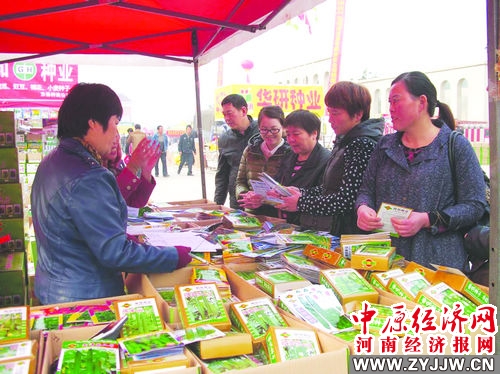 【中原经济网讯】10月21日,为期5天的全国秋季特色种子交易会在新乡市平原新区农商新天地盛大开幕,来自北京、山东、辽宁等全国各地的近500家知名种子企业齐聚农商新天地,展出种子近千个品种,预计交易额达10亿元。农商新天地由省供销社与上海华一联合集团斥巨资携手打造,是省级重点项目。自去年开业以来,农商新天地备受各界关注,在规范经营的基础上,致力于为全国种子客商提供一个高辐射、高收益、高质量的交易流通平台。河南经济报 记者 高青坡 摄
