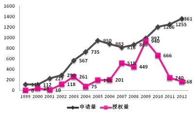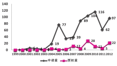 年度间农业植物新品种权申请量和授权量