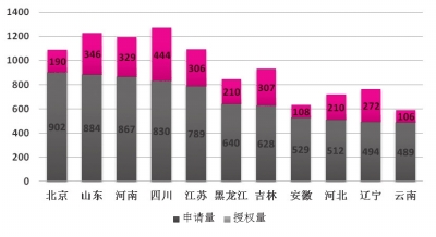 年度间国外农业植物新品种权申请量和授权量 申请量位于前十位省份(截至9月底) 不同植物种类新品种权申请比例(截至9月底)