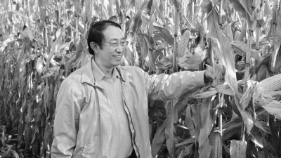 图为北京德农总经理吕楠博士在新疆生产建设兵团农四师71团田间察看“晋单73”玉米新品种的丰硕果穗。(作者系高级记者)