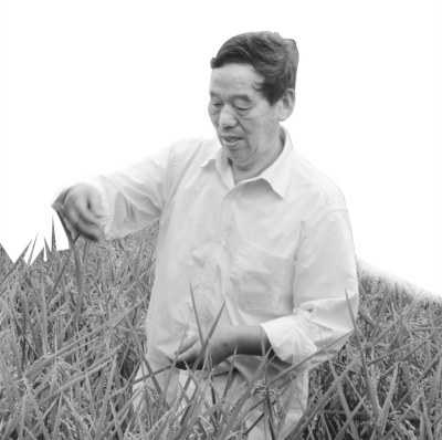 张理高在海南三亚杂交水稻制种田里。 资料图片