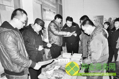 图为1月9日农业部冬季种子企业监督抽查督导组河南小组联合河南省种子管理局在河南省新乡市平原新区农商新天地市场抽查种子店铺。本报记者王澎摄