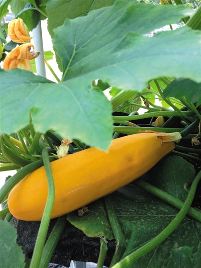 此外,记者还在另一个温室里找到一种奇特的西葫芦,它们黄黄的“身子”,与香蕉颜色差不多,又像是芒果。工作人员说,它叫“香蕉西葫芦”,也是生吃的,每个能有1斤多重,既有甜味又有瓜的味道。