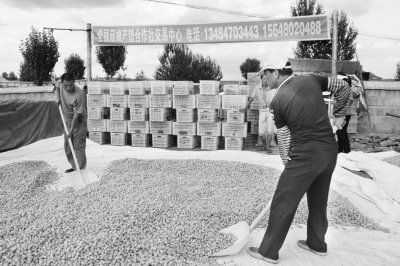 近年来,内蒙古自治区呼伦贝尔市阿荣旗围绕市场化、规模化、标准化、品牌化要求,调整种植结构。今年,该旗亚东镇农民种植黄菇娘5100余亩,总产量500万公斤,为农民创收2500余万元。菇娘学名酸浆果,是一种食用药用一体的草本水果。图为该旗泉福菇娘产销合作社社员正在晾晒黄菇娘。陈万春田国威摄