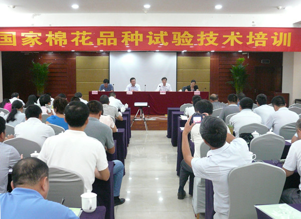 8月20-21日,全国农技中心在安徽省合肥市举办了2014年国家棉花品种试验技术培训班。来自全国棉区相关省(区、市)种子管理站(局)负责棉花品种区试的人员、国家棉花品种区试主持人、各承担单位试验执行人100余人参加了培训。全国农技中心谷铁城处长、中国农科院棉花研究所毛树春研究员、崔金杰研究员以及江苏省农科院许乃银研究员分别就品种区试审定形势与变革、棉花产业现状与展望、抗虫棉产业化与安全管理、品种试验数据探索与应用等方面作了专题报告;来自棉花品种区试工作一线的8位试验执行人交流了试验技术与管理经验;培训期间,学员们考察观摩了国家棉花品种区试和展示田现场(荃银试点)。
