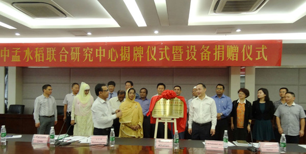 在科技部的支持下,国家科技援助项目“中国-孟加拉国水稻联合研究中心”于2014年9月2日在四川农业大学成都校区举行了揭牌仪式暨设备捐赠仪式。孟加拉国农业部副秘书Shirina Khatun女士、四川省科技厅副厅长罗治平、四川农业大学副校长王曙光等出席仪式。