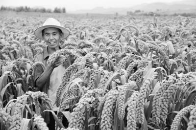 “这是黄谷子,每亩能产1200多斤。”8月14日,内蒙古敖汉旗四家子镇60岁的李华成老汉在查看自家谷子。据悉,位于敖汉旗四家子镇的农业部谷子高产创建万亩示范片,采取膜下滴灌节水技术,实行统一耕翻土地、统一配方施肥、统一作物品种、统一机械覆膜、统一田间管理、统一机械收获的“六统一”模式管理。眼下,万亩张杂谷5号长势良好,丰收在望。张国锋摄