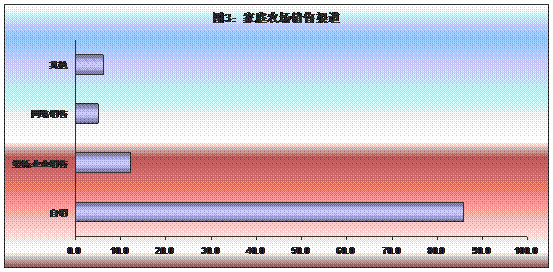 (六)产品销售以自销为主。在全部被调查的家庭农场中,自销的比例达85.8%,委托企业销售的比例为12.2%,网络销售的比例为5.1%,其他销售的比例为6.1%(见图3)。新型农业经营主体的产品销售渠道以自销为主,农民在大物流、大市场环境下利用现代营销手段仍显不足。