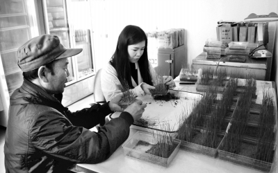 为给广大种植户提供优质放心良种,连日来,北大荒股份勤得利分公司农业科技服务中心积极开展水稻种子芽率试验工作。同时,还对水稻育秧所需种衣剂及其配套肥不同剂量的安全性进行了对比试验,为明年指导种植户育好秧提供了科学依据。图为科技人员正在查看试验秧苗生长情况。 陈卫芳刘江摄