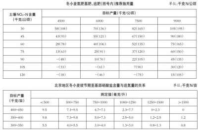 ①养分施用量。每亩施肥总量:N12~15千克,P2O56~8千克,K2O4~8千克。②肥料施用量。基肥:提倡施用有机肥,每亩施腐熟农家肥1500~2000千克,尿素6~8千克或碳酸氢铵20~25千克,磷酸二铵15~20千克或过磷酸钙40~50千克,氯化钾5~10千克;若用复合肥,在黄淮海平原,宜选用中氮高磷低钾型,如15-20-10或16-20-18等;在长江流域,宜选用氮磷钾含量相等或相近的通用型复合肥,如15-15-15或12-15-18等,每亩施用量30~40千克。追肥:返青至拔节期亩施尿素15~20千克,1次或分2次施用。对强筋优质小麦,在扬花期可加追尿素3~5千克。