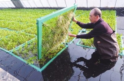 12月29日,河北永清东营村立体农业示范园工人在查看“无土芹菜”水生根系生长情况。近日,“无土芹菜”在东营村立体农业示范园试种成功。据悉,“无土芹菜”采用“自动下沉式水生蔬菜种植浮床”栽培技术,实现芹菜标准化种植生产。 新华社记者李晓果摄