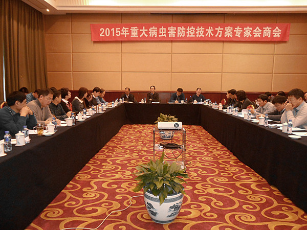 为做好2015年重大病虫害防控工作,提高病虫害防控效率和效果,降低病虫害危害损失,保障农业生产安全,全国农技中心于1月21至24日在北京组织召开了2015年重大病虫害防控方案专家会商会。来自中国农科院、中国农业大学、河北农业大学、广东省农科院等科研教学单位以及有关省(市、区)植保站的植保专家共40多人参加了会议,种植业管理司植保植检处有关领导到会并讲话,全国农技中心钟天润副主任出席会议并对重大病虫害防控方案的制定提出了要求。与会专家充分研讨了今年玉米、水稻、棉花重大病虫害以及蝗虫、草地螟、马铃薯晚疫病、番茄黄化曲叶病毒病、玉米二点委夜蛾、粘虫、柑橘大实蝇发生情况、防控策略、防控目标、重点区域、技术措施和关键工作措施,编写了上述重大病虫害2015年防控技术方案。