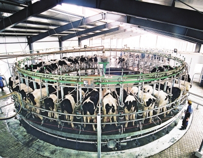 现代化的养殖模式为农产品安全生产提供条件。图为江苏现代化的奶牛养殖取奶场景。