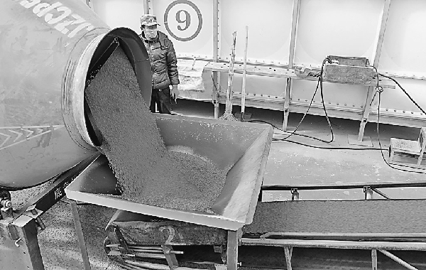 近日,北大荒股份江滨分公司种子包衣工作全面展开。据了解,该公司严格执行包衣技术,恰当掌握药、种、水配比比例,并采用先进机械进行种子包衣,确保种子100%包衣。同时,公司还对包衣种子进行发芽试验,确保每一批次种子发芽率达到99%以上。图为工人正在进行水稻种子包衣工作。