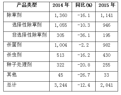 表1 先正达2015年一季度农药销售额