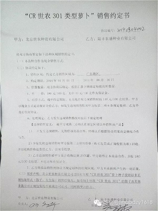 另一法律人士也认为,从判决书的内容来看,法院认定经销商和北京世农为委托关系即代销关系的,而根据2014年2月15日北京世农和陆丰农盛签订的“CR世农301类型萝卜”销售约定书来判定双方应属购销关系。如双方是代销关系即法院认定的代销关系,法院也仅仅只追究受托人即农盛种业的法律责任。