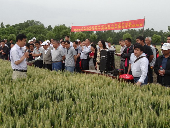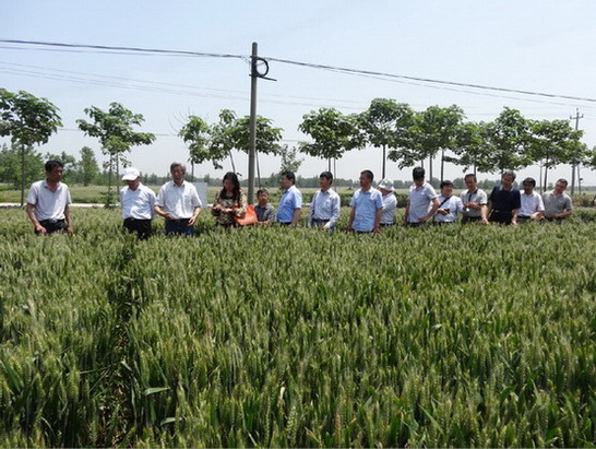 安徽农业大学副校长马传喜教授总结点评说,农业部行业科研专项“粮食作物抗灾群体优化与定向减灾技术研究与示范”针对区域性低温、高温、干旱、大风等灾害性天气危害频繁现象,通过品种减灾、配套栽培技术减灾、农化产品减灾、机械装备减灾,可实现区域性小麦高产高效优质生产。郑麦7698示范田长势喜人,按照当前长势产量水平应在700公斤以上,是一个兼具高产与优质特性的好品种;在涡阳县西阳镇示范现场,与会人员观摩了抗倒试验研究示范田、增产抗倒物化产品“劲丰”示范田。与会领导和专家认为,该项目通过3年的研究,该行业科研专项单项技术成熟、示范效果好,建议进一步组装单项技术、增加其示范面积、提高技术示范效应,为黄淮麦区小麦生产提供强有力的科技支撑。