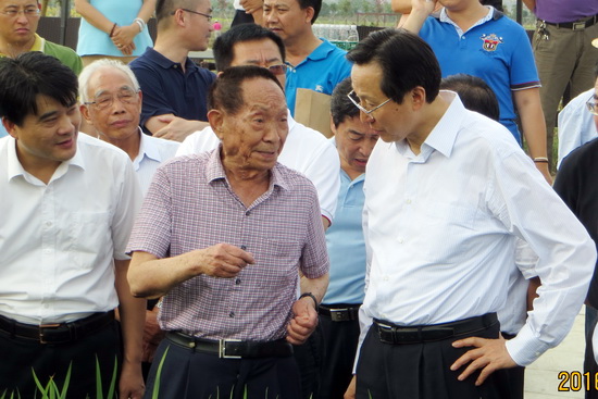本网讯 近日,农业部部长韩长赋在海南省三亚市参加澜沧江—湄公河合作首次领导人会议期间,专程看望了正在三亚从事南繁育种工作的袁隆平、程相文两位老专家。
