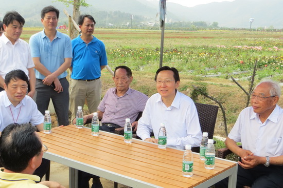 在三亚市落根洋南繁基地,韩长赋部长和袁隆平、程相文一起察看育种田水稻长势,详细了解他们的科研、生活、身体情况,向他们表示慰问和敬意。他还听取了在场科研单位、育种企业负责人和基层干部群众对加强南繁基地保护建设的意见建议。(完)