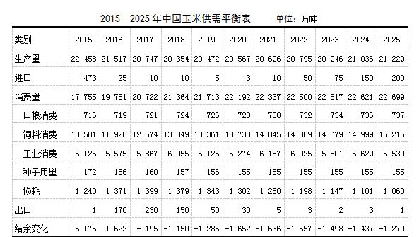 2015—2025年中国饲料供需平衡表 单位:万吨