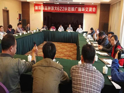 与会人员实地考察了开化县杨林镇平川畈“浙大622”免耕直播油菜示范现场,听取了示范情况介绍。座谈会上该品种选育者浙江大学周伟军教授讲解了“浙大622”的特征特性及全省各地高产示范和推广情况,相关市、县交流了“浙大622”在本地种植表现和示范推广情况。参会代表认为“浙大622”品种具有三大特点:一是好种,该品种具有四分之一“高油605”的血缘,抗逆能力强,适应性强,丰产性好,含油量高达48.3%;二是好看,该品种生长整齐,油菜花呈鹅黄色,养眼,是观光油菜的理想品种;三是好吃,该品种籽粒呈褐黄色,油质清澈,其芥酸含量0.1%,硫苷含量19.6微摩尔/克。