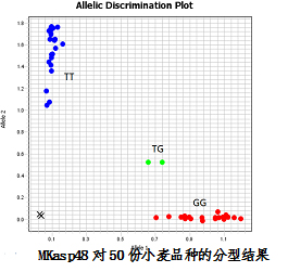 以吴明生、赵海艳等组成的研究小组利用小麦全基因组SNP芯片(Illumina 90K)对24个小麦品种进行全基因组扫描分析,筛选了300多个适合小麦品种鉴定SNP候选位点,并从中选定55个位点,利用KASP-SNP分型技术对北京市审定的50份小麦标准样品进行鉴别分析,初步构建了基于实时荧光PCR仪的SNP检测平台。