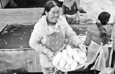 草海镇白萝卜种植一年可种三季,面积达6000余亩,总产值达3000余万元。图为村民在装载丰收的萝卜。 陈武帅摄