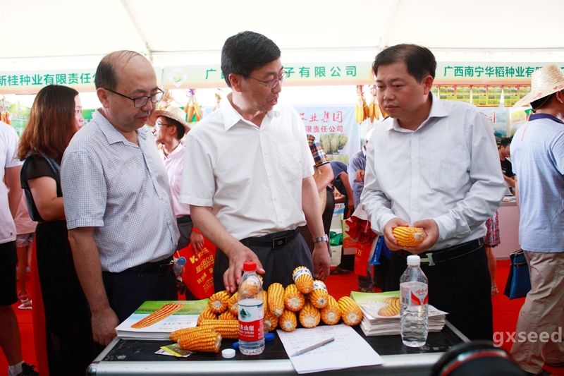 展示区实地察看,并鼓励广西种子企业再接再厉,推动广西种业取得新的进步。