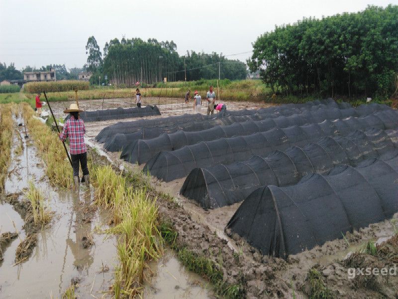 品种生产试验和玉林市晚造田间种植鉴定圃播种工作。播种当天天气反复无常,种子站工作人员克服困难天气,播种采取透气性薄膜育秧的方式进行,并按照试验标准全程监督。