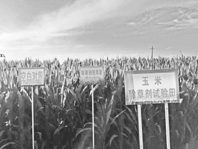 试验田里,可以明显看到,通过配合使用农药减量增效助剂,玉米除草剂减量20%~40%的情况下,均取得了不错的杂草防除效果。 徐建军摄