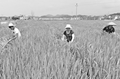 种植专业合作社成员在制种基地赶禾花。采取合作社+基地+农户形式,合作社在该县罗洪、司门前、金石桥镇等乡镇流转1200多亩耕地,为广东金稻种业有限
