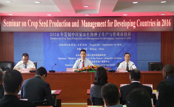 由商务部主办、全国农技中心承办的“2016年发展中国家农作物种子生产与管理研修班”于8月26日在北京开班。全国农技中心杭大鹏书记出席开班仪式并致辞。