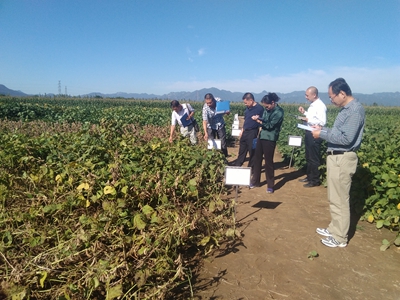 近日,北京市大豆春播品种区域试验考察会在昌平区种子管理站试验基地进行。考察会邀请了北京市大豆育种、生产、技术推广、种子管理等领域的专家5人对春播区域试验品种进行了田间考察,从生育期、抗倒性、抗病性及田间总评等方面对不同品种进行了专业评判、打分。本次大豆春播品种区域试验参试品种共有4个,包括“中黄30”、“星研0901”、“中黄314”、“诚豆1号”,其中“中黄30”作对照品种,5月16日播种,全生育期采用滴灌灌溉,并积极开展了病虫害的有效防治,种植管理科学规范。目前,各品种均进入成熟收获期,表现出各自的特征特性,品种间差异明显。下一步,基地将对各品种进行脱粒考种,统计产量,并进行品种的综合评价。