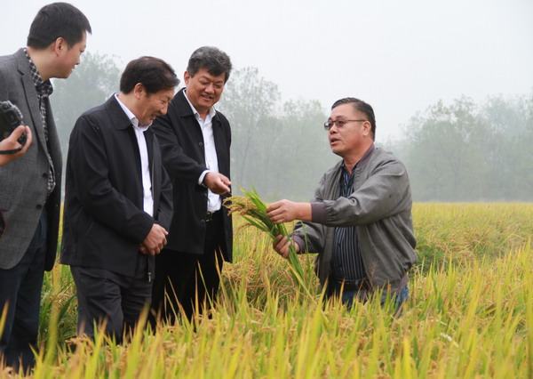 10月13日,河南省农科院在固始县组织召开院县合作项目“水稻高效生产示范”观摩交流会,邹庆鹏副院长出席会议并讲话。