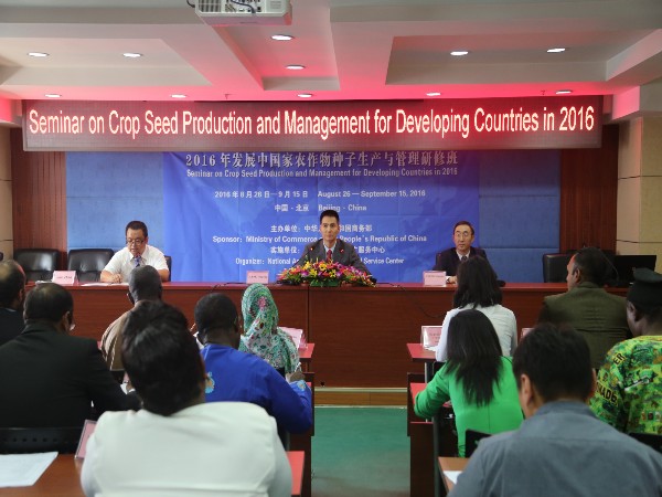 由商务部主办、全国农技中心承办的“2016年发展中国家农作物种子生产与管理研修班”于8月26日至9月15日在北京举办。本次研修班共有来自巴基斯坦、汤加、津巴布韦、缅甸、苏里南、蒙古、赞比亚、阿富汗、塞浦路斯、喀麦隆、加纳等11个国家的35名农业官员和专业技术人员参加。研修班结业典礼于9月15日举行,全国农技中心杭大鹏书记出席并致辞。